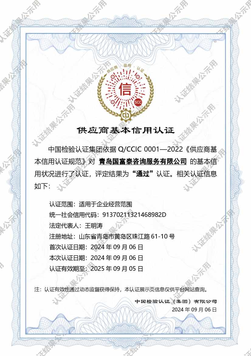 国富泰企业认证服务平台汇聚了一帮来自认证行业的专业技术人才,团队老师均具备多年各行业企业咨询、审核资历,平台实行咨询师全程责任制,着力于为中小企业提供简明、快捷,全方位、全过程的认证服务流程。